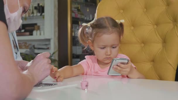 Kosmetikerin Die Anwendung Von Nagellack Auf Kinder Nagel In Einem Nagelstudio In Zeitlupe